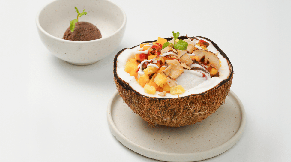 To end on a naturally sweet note, desserts such as the Coconut Sundae with house-made coconut nice cream and tropical fruits, and the Salted Peanut Butter Bar embody indulgence without added sugar, drawing sweetness from nature itself.